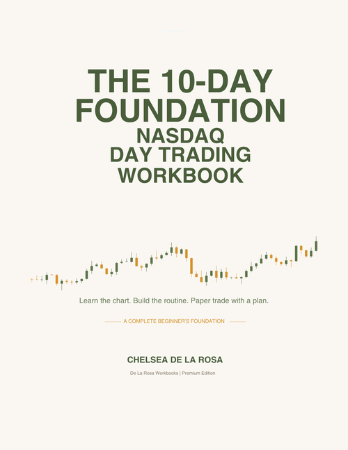 The 10-Day Foundation: Nasdaq Day Trading Workbook was built for beginners who want a clear, structured start. Inside, you will find step-by-step lessons, real chart examples, guided practice, and practical tools designed to help you build a routine before risking real money.